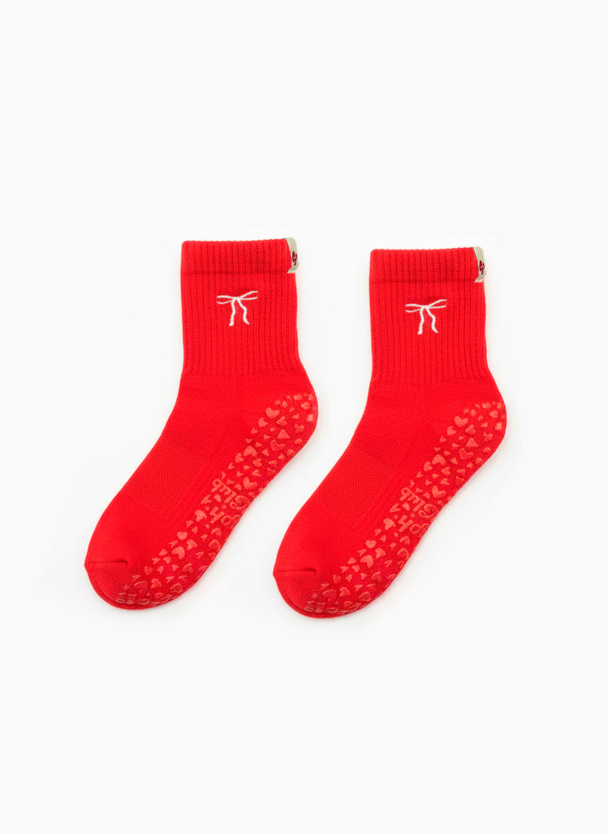 Nuestro modelo Red Bow captura la esencia de la temporada con un toque delicado y femenino. El lazo rojo bordado añade un detalle sutil pero lleno de intención: una mezcla perfecta entre elegancia clásica y encanto festivo. Diseñados para quienes aman los accesorios que hablan por sí mismos, estos grip socks transforman tu práctica de pilates en un momento aún más especial.